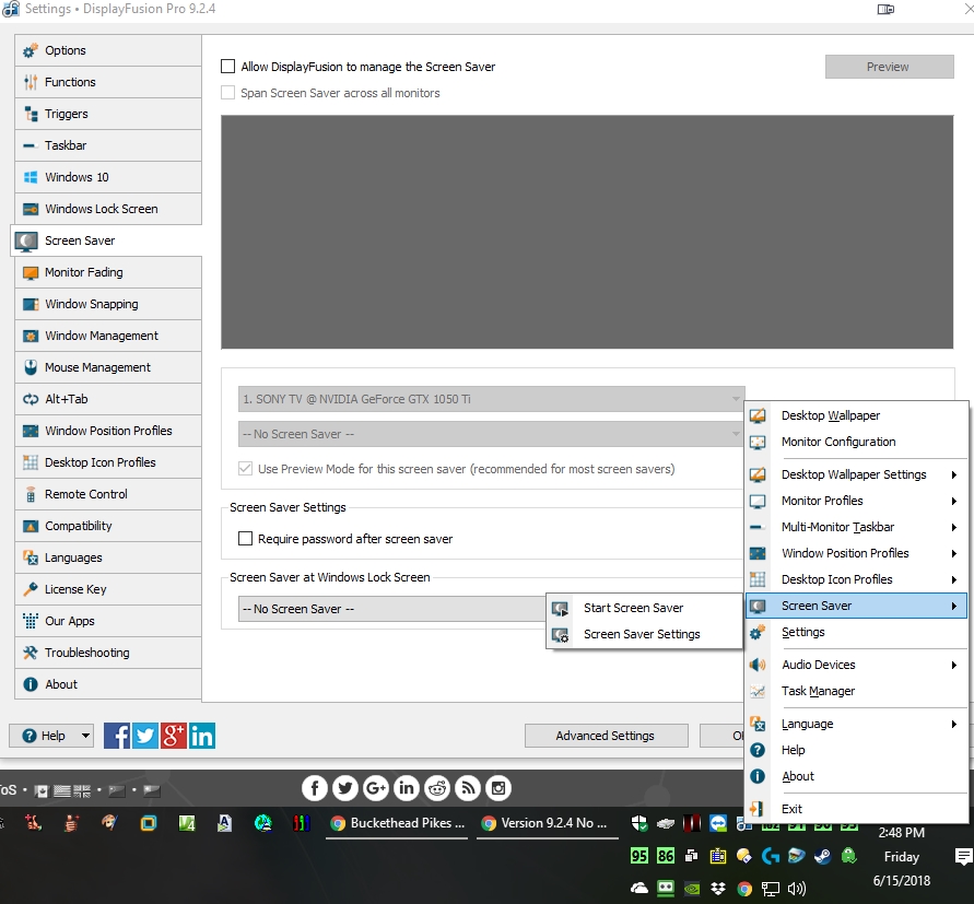 As I have already stated, when I right click the icon in my System Tray, there is no option for Screen Saver. Please actually look at the screenshot I provided before commenting.