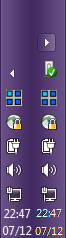 It should probably be noted that I have modified the stock windows taskbar a little. I'm using 7+ Taskbar Tweaker to reduce the minimum width to 34px and remove the show desktop button, which is also what the DF taskbar is set to via the settings. I've also used TClock Redux to change the stock taskbar clock text to the more concise format shown, and use the advanced settings in DF to replicate the change, but this shouldn't affect how DF works. DF lets you set a 34px taskbar and custom clock text without hacking anything, and the small start button is a stock Windows setting, not a third party hack.