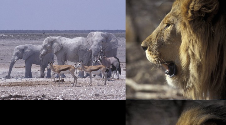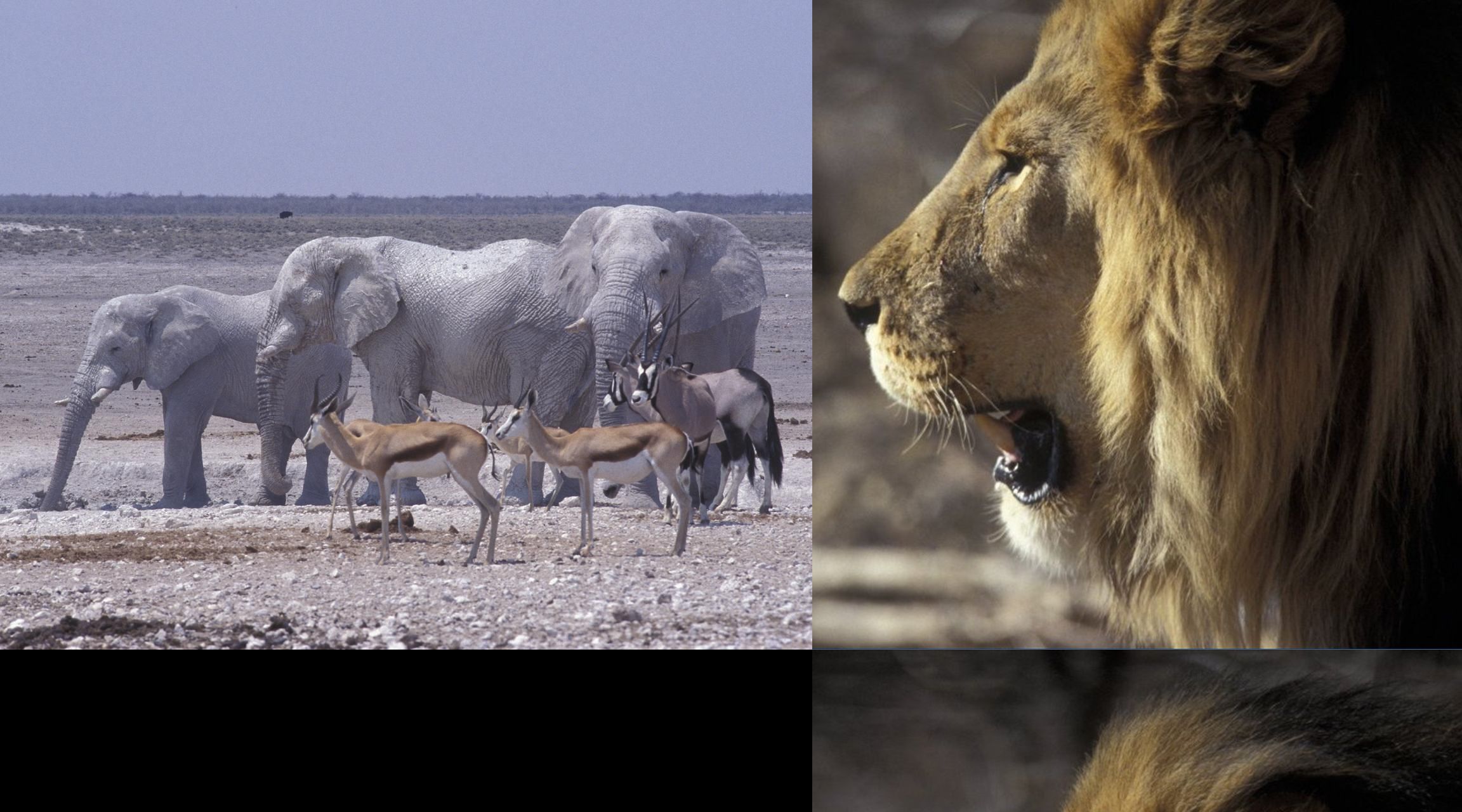 The desktop image was created using "Print Screen". Note that the main monitor is in landscape, the secondary is portrait. On the main monitor I see the black area immediately above the task bar; the black area above the elephants is off the top of the main monitor. The elephant image is centred in both.