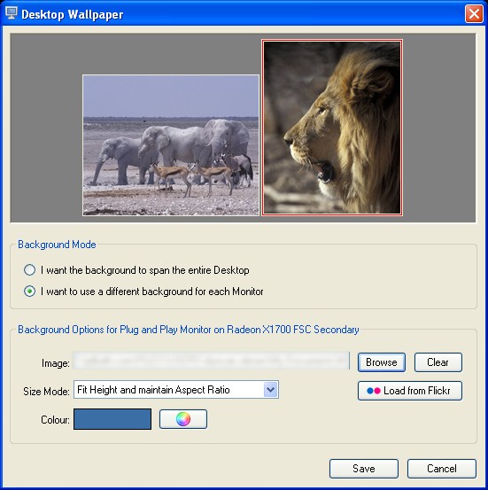 Note: I do see the wallpaper displayed correctly, as shown in the "Desktop Wallpaper" dialog, for a brief period when logging on, and until the screen saver kicks in when locking the PC. Could this be a problem with the Radeon X1700 FSC card or driver?