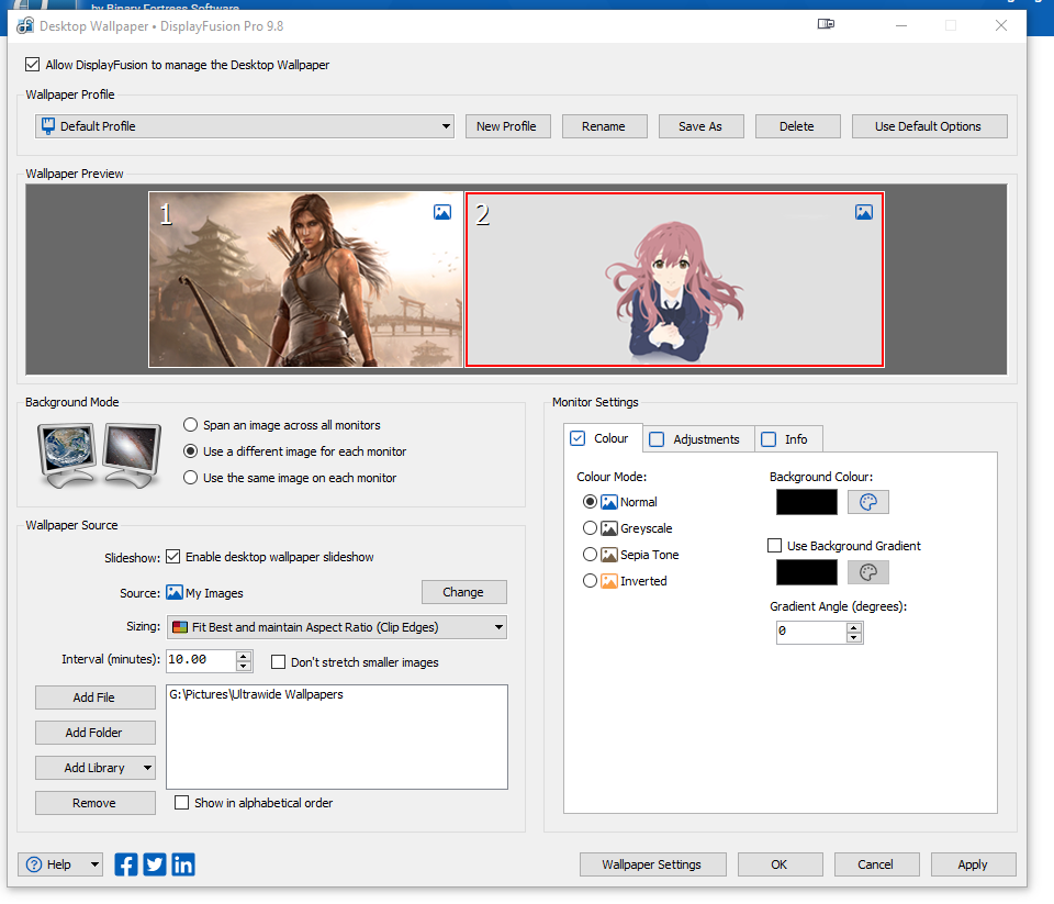 Could you send me over a screenshot of your DisplayFusion Wallpaper Settings window?