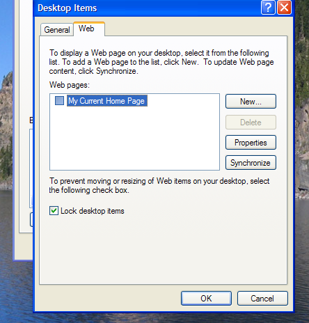 Edit: I think it happened when I was updating some radiology-related software on my PC. It killed my explorer process and hung. Being the "crafty" IT guy that I am, I launched task manager and ran explorer.exe to get back to the desktop, and then I rebooted. After that, my wallpaper has been hosed. It may be active desktop related somehow, because if I toggle active desktop on, I get some of my wallpaper back. Ultimately, what I experimented with, and have done to get it to work right now, is to not run active desktop, but to still check the "lock desktop items" box. See attached screen scrape. Any ideas now?