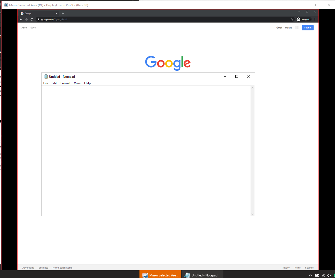 I noticed today however that when the mirror window is shared, it can't be behind any other windows, otherwise the portion of the mirror window that is behind another window is similarly obscured in teams. See the two attached images where I'm sharing (via teams) a mirror window, which is behind notepad. One image is what somebody viewing the screenshare via teams sees, the other is what is displayed on my monitor.