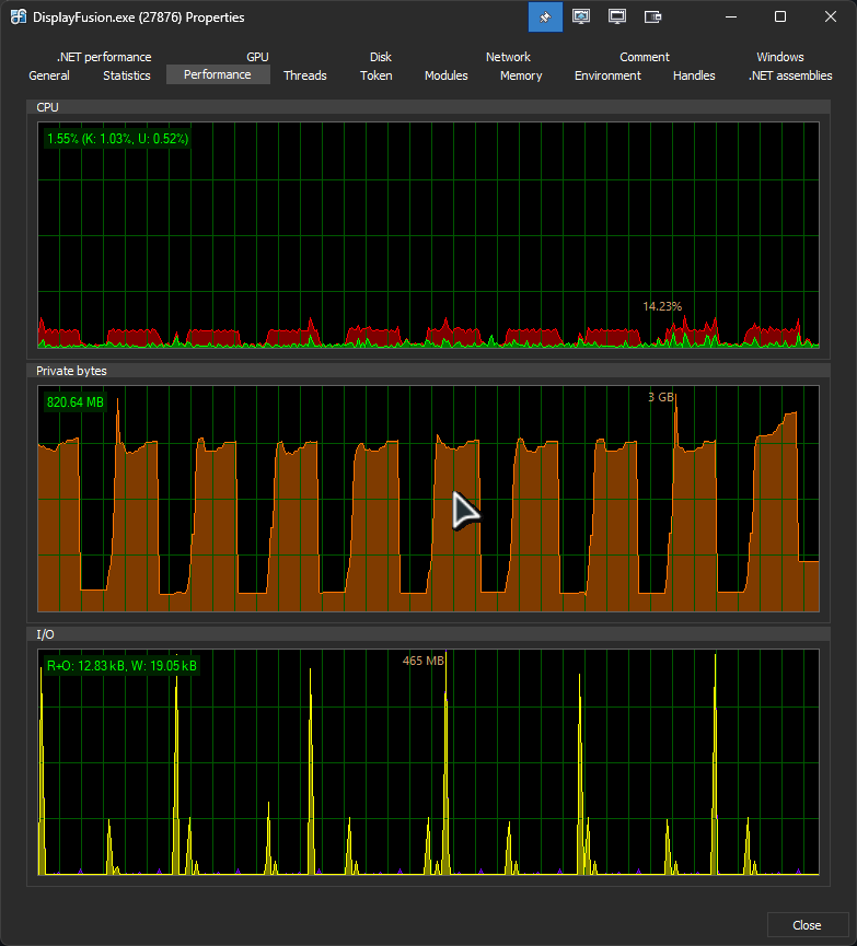 Alright, the memory leak stopped happening with the new beta version, but it still does the weird I/O search on a steady basis (about once every min for about 1-2 sec). From what ive been able to skim through the log, it might be related to a screensaver i dont use anymore? Not exactly sure, but that's the only thing i can glean from it...