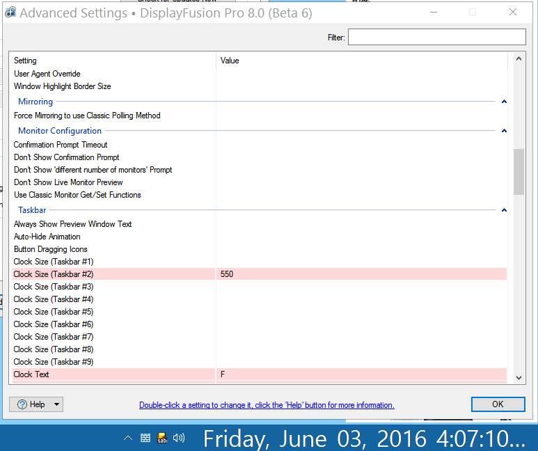 I am curious what the default setting is for this? My clock on DF is a hair tinier then my Windows clock, if I knew what the 100% value was I could up it by a hair in hopes to have them match.