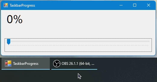 I made the program myself because I could not find anything that made the taskbar progress very demonstratable except something like downloading a large file over and over.