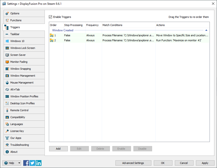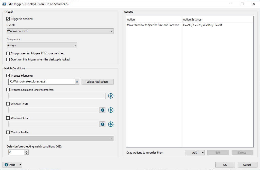 Opening explorer on monitor 1 is fine; it moves/resizes to the correct position. Opening explorer on montor 2 however doesn't maximize, just moves it over. If I close this window, then re-open on monitor 1 it maximzes briefly on monitor 2, then moves over to monitor 1 and resizes accordingly.
