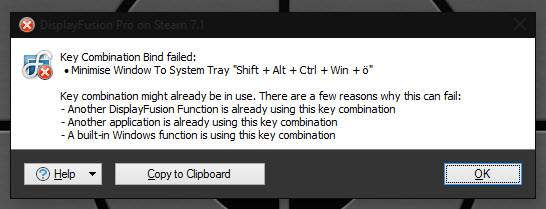 Cleared the error by change the key combination.