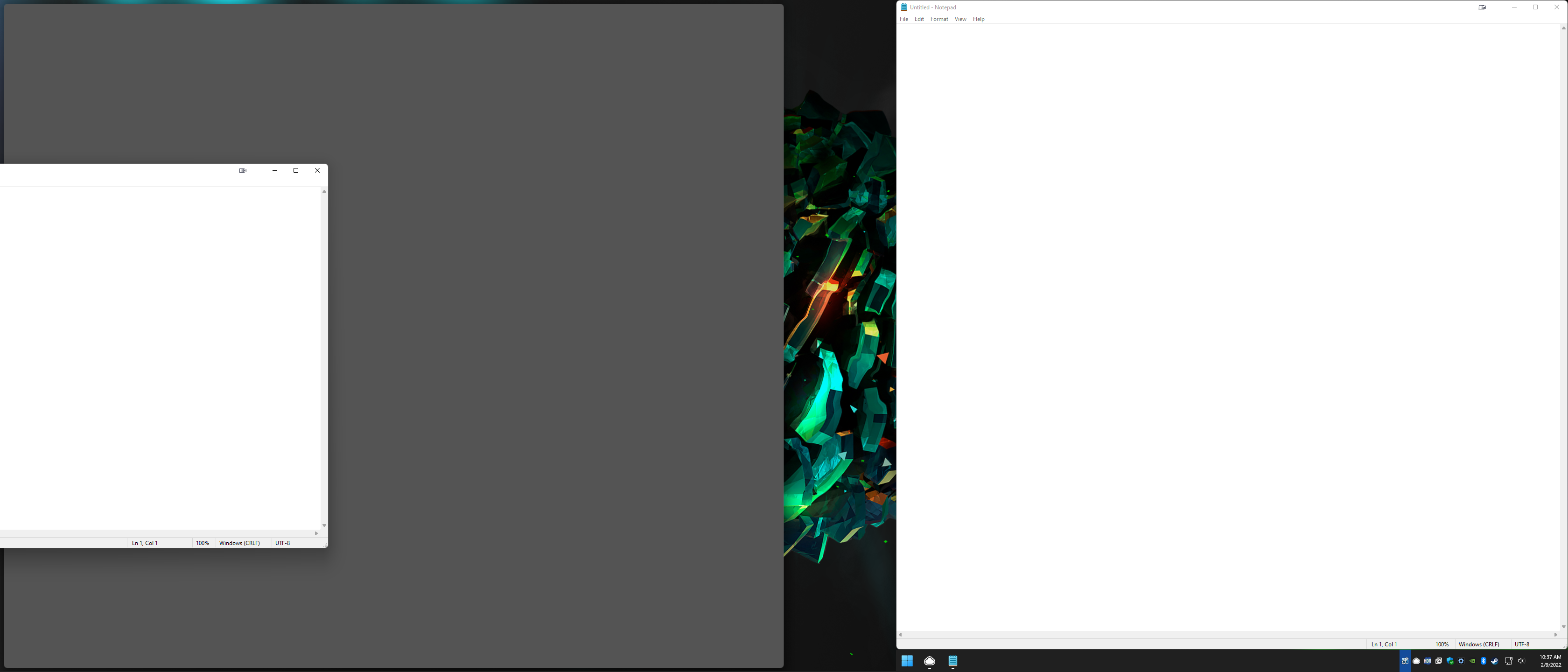 With those settings, what I would expect to happen is that if I drag a window to the left side of the screen, it would have that overlay to maximize the window to 1920x1440. What I see is that it would split the monitor in half, ignoring the FusionPro split. I've attached a screenshot where I have notepad maximized in the Fusion Pro split on the right and me dragging another notepad to the left side of the screen.