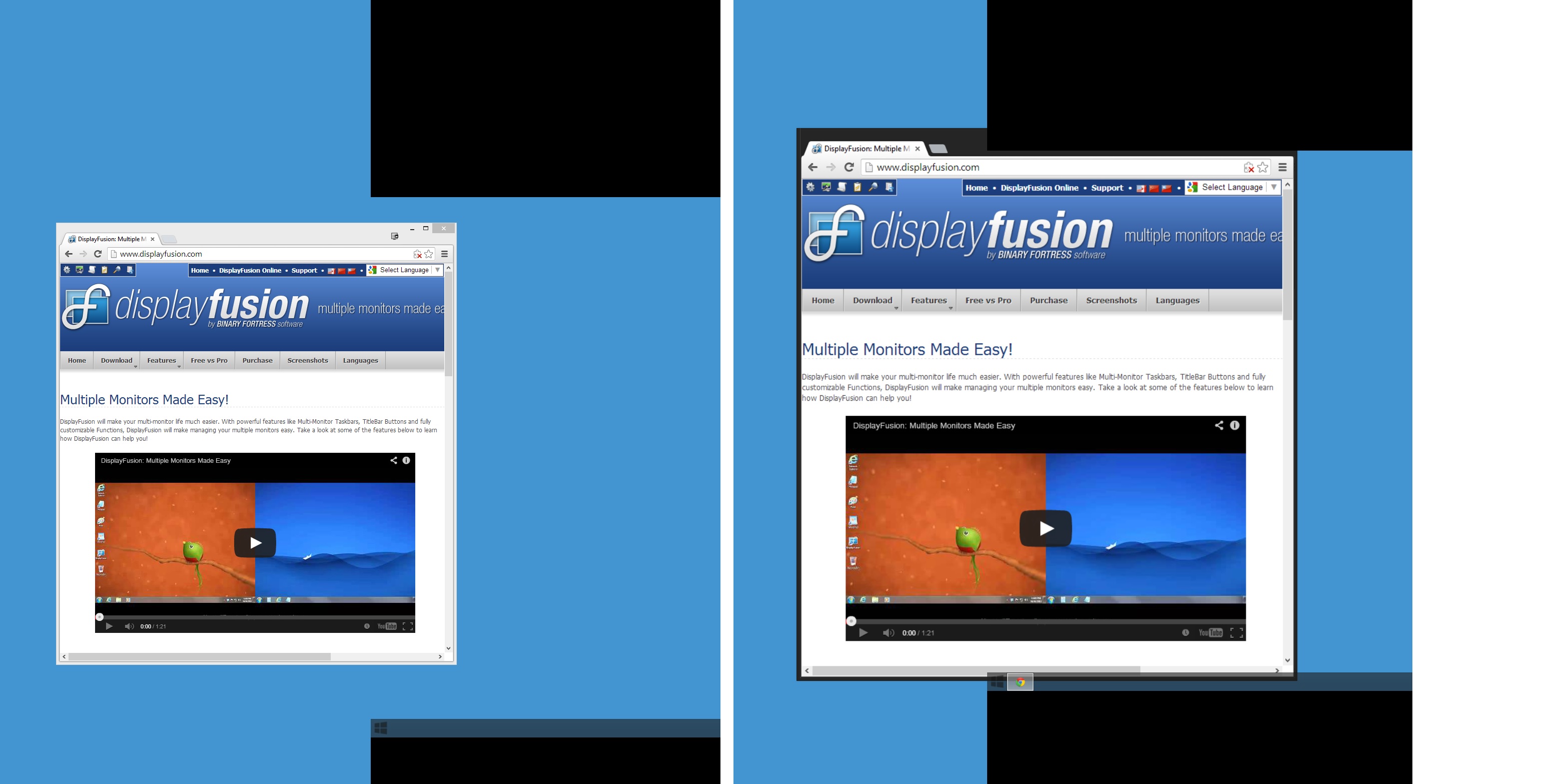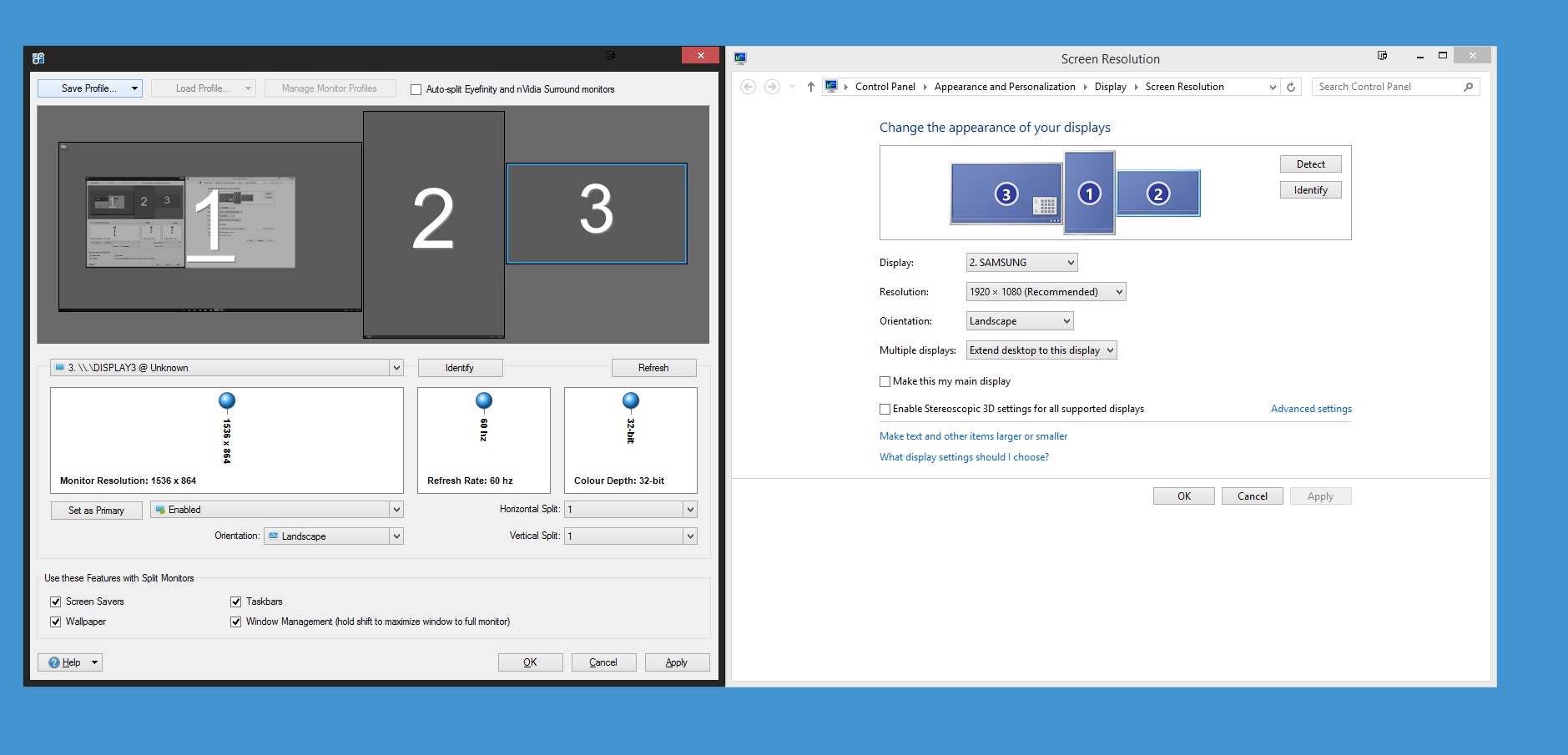 With displayfusion uninstalled all monitors work as intented. With displayfusion installed, my third display is detected as 1536 x 864 although it is 1920x1080. This means multimonitor wallpapers, multimonitor taskbars and window dragging doesn't perform as normal. (See attached screenshot).
