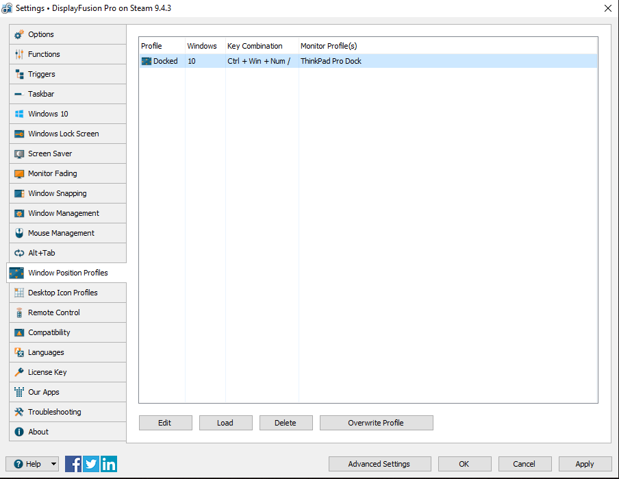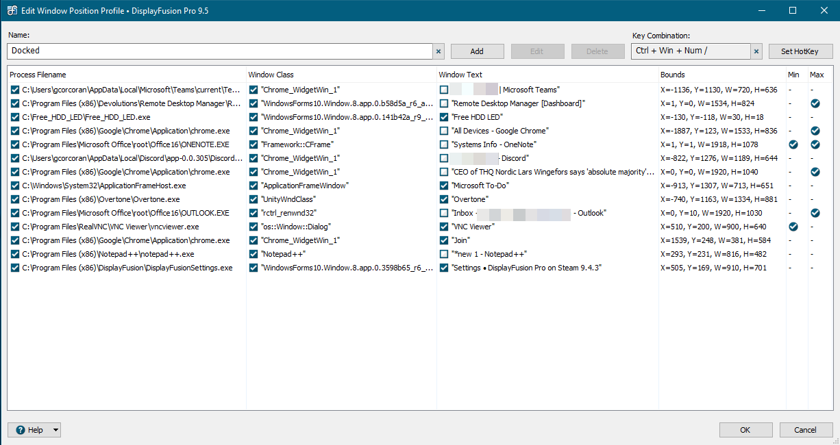 So I just tried what you suggested. I manually loaded the profile 3 times and it moved one window (Microsoft Teams) and everything else stayed where it was.