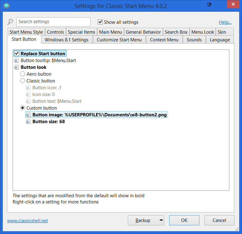 But this may cause problems, if you use an image that is large (and scaled down in classic shell), on a second monitor DF will not scale down this image if "multi-monitor taskbars" is enabled. (DF 5.1.1 beta 3 and win8.1 and classic shell 4.0.2 )
