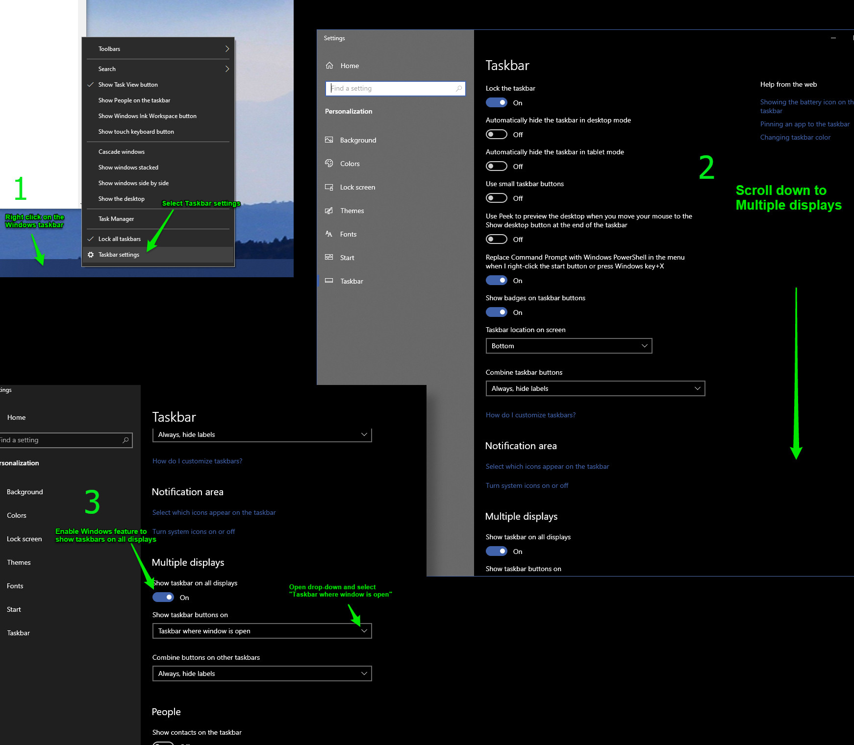* Window icons appear on the taskbar on the associate monitor where the app is