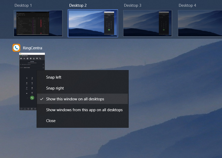 I use a VoIP phone and have the dialer pinned to always appear on the far right side of all my virtual desktops. Works great for me.