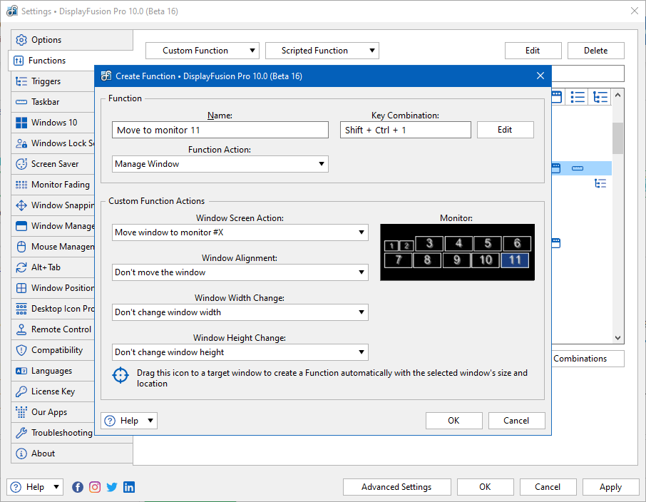 While all of the DisplayFusion features are great with 2 or more monitors, we found the following features to be especially helpful when using 11 monitors: