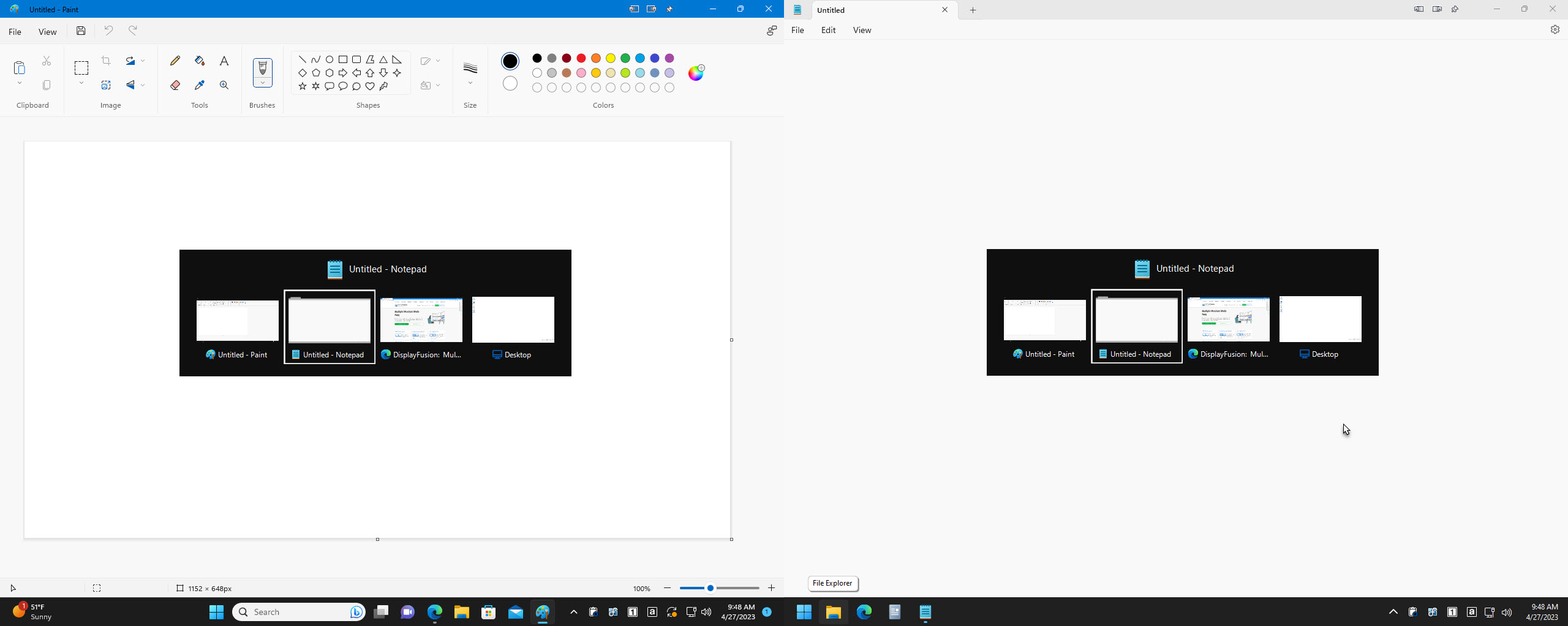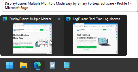 "Aero Peek" on the DisplayFusion Taskbar