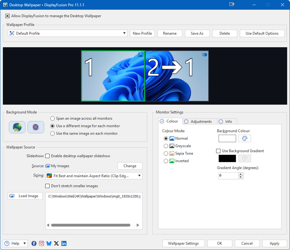 DisplayFusion Monitor Configuration Window